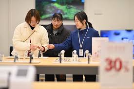 “I’ve been using this fitness tracker for a few years, and I’m ready for an upgrade. I want something with longer battery life and more advanced features,” said Wang Yucheng, who was shopping with his wife.
