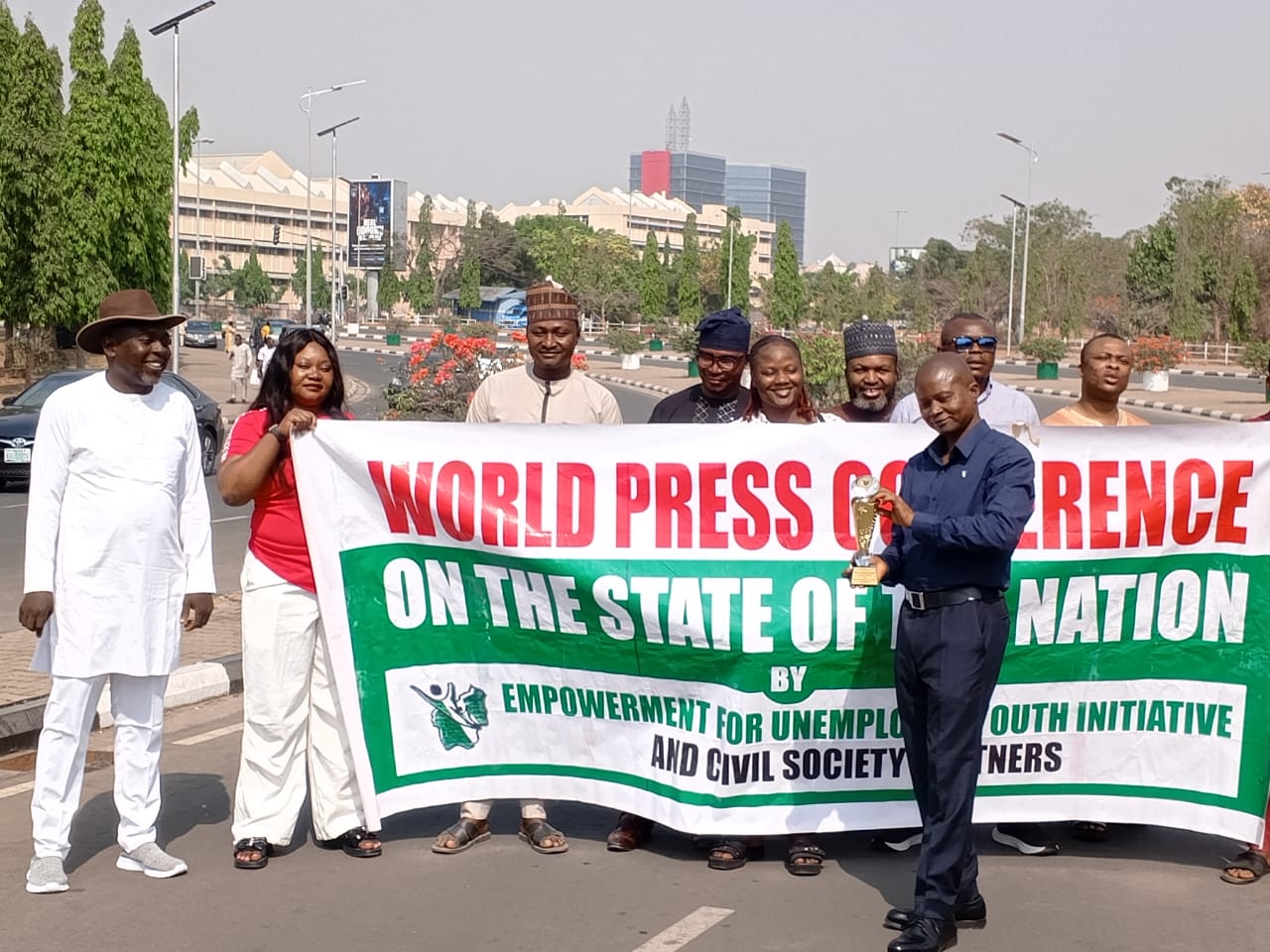Nigerian Youth under the leadership of Empowerment for Unemployed Youth Initiative (EUYI) on Tuesday stormed the National Assembly to present Senator Olajide Ipinsagba with the Most Dishonourable Senator of the year award.
